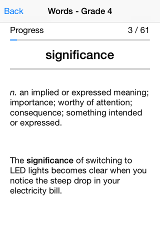 There are thousands of words in the English language. Which ones do you need to know? Tap and Flash has the answers! Try our vocabulary flash cards with Tier 2 Common Core words. These are words that span many different fields. Tier 2 words are common in written material that students will encounter. Each grade introduces more complexity, so it is crucial to have a strong vocabulary base. Once these Tier 2 words are memorized, you can use them in your own writing for more precise sentences.