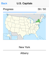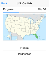Do you know all of the U.S. states and capitals? The geography section contains flash cards for the 50 states with each state highlighted for visual association.